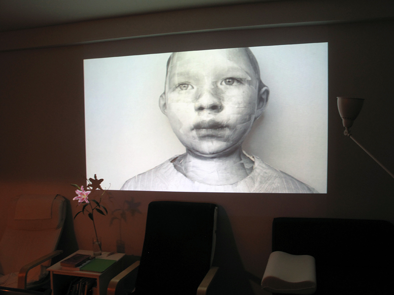 身の回りの人や、ネットから集めた瞬きの動画を静止画像に分割して出力したものを張り重ねてコマ撮りし、人がただ瞬きを続ける動画とした。